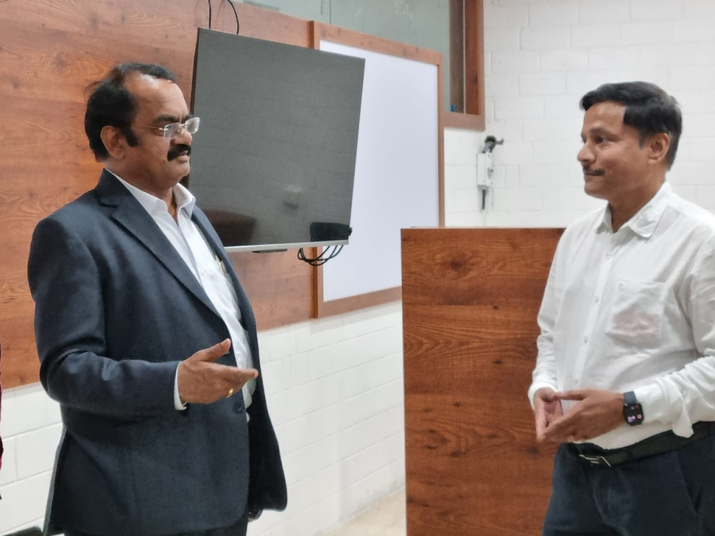 Dr. Annadurai interacts with Mr. Saravanan, CMD of Aakash Aerospace